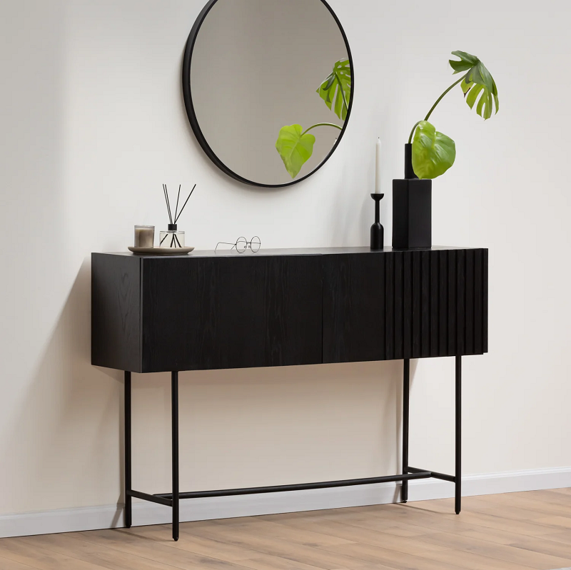 Console_92. Bàn console gỗ veneer sồi có 2 ngăn hộc kéo